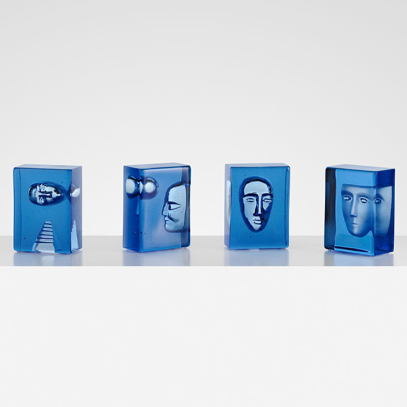The renowned Swedish glass artist Bertil Vallien has created Azur Frost. It is an exclusive art object in blue glass, cast in a charcoal mold, with a sandblasted imprint of a face. The face is a recurring Bertil Vallien motif – one of his signatures, often seen in his magnificent boats of glass. The object is handmade at Kosta Glassworks in Sweden, in a limited edition of 1000 pieces, and is part of the Kosta Boda Artist Collection.