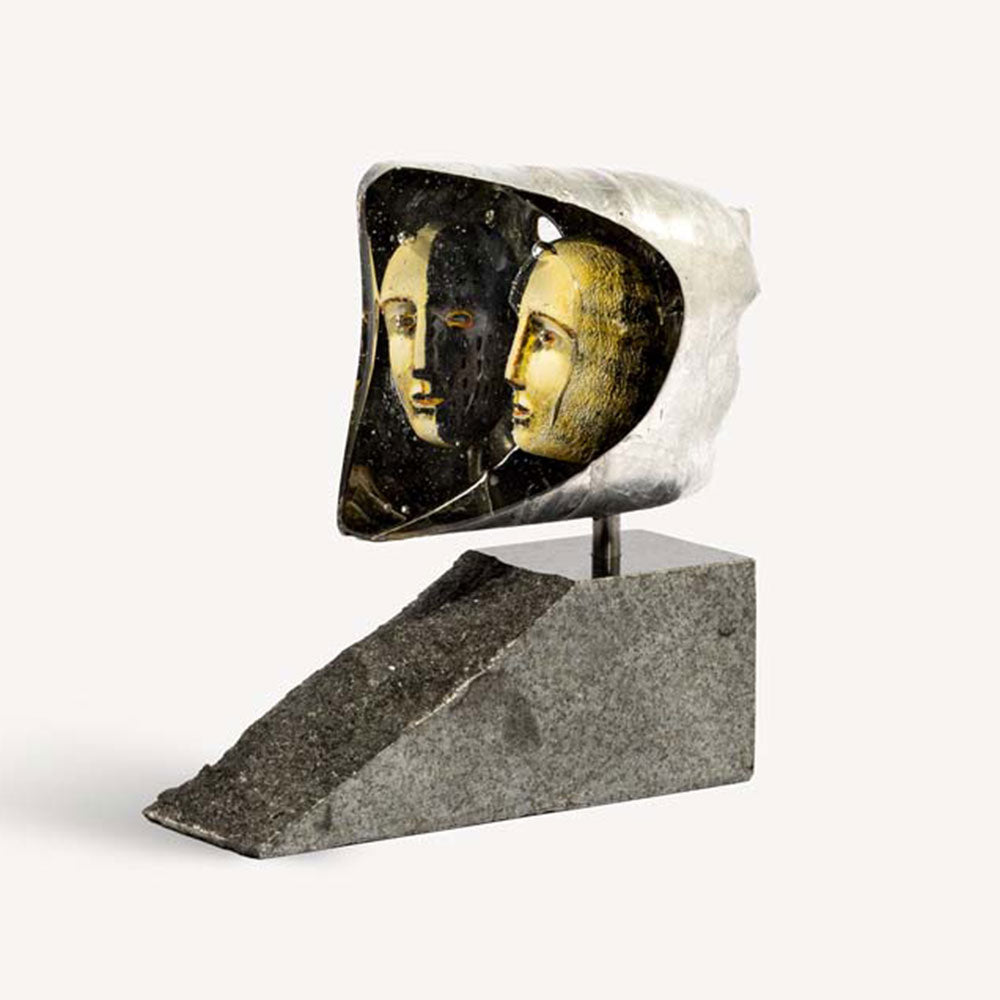 In mythology, Janus was the god responsible for dawn and dusk. For Bertil, who has always tried to capture light in his glass, this dual nature has become a character that he revisits time and again, searching for a conversation. The powerful contrast between raw and cut glass gives the sculpture its special magic.
