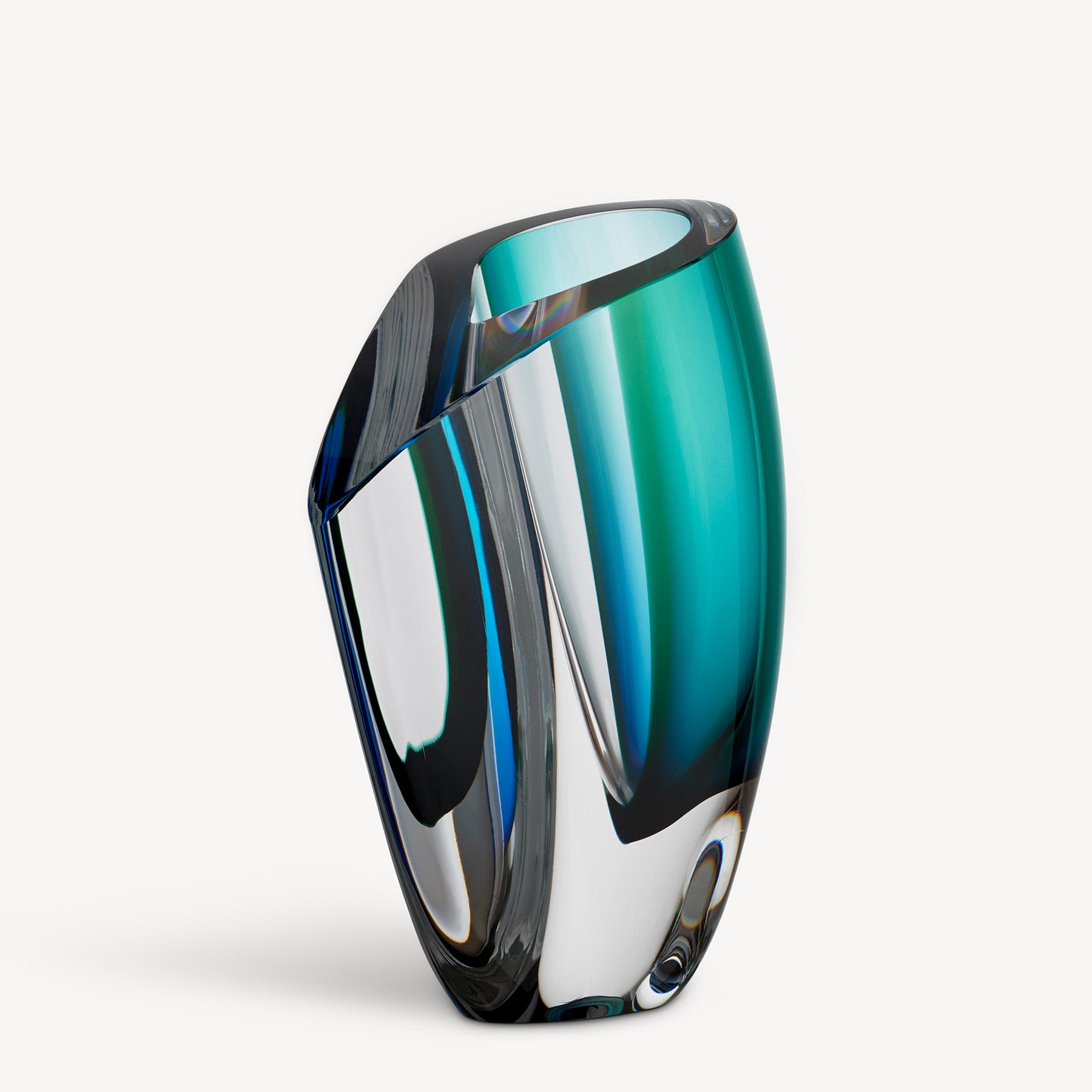 With Mirage, the artist and designer Göran Wärff found inspiration from nature and light, especially in the reflection of light and optical illusions. The object is a sculpture, a vase, and an art piece, available in a wide range of colors. To create a spectacular object like Mirage, an angled pipe is used to form its distinctive curved shape. Mirage is handmade in Kosta, Sweden, and is part of the Kosta Boda Artist Collection.