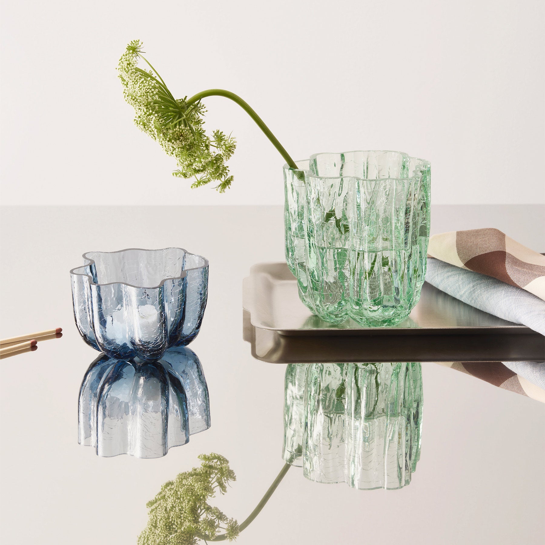 Each Crackle Bowl/Votive Circular is made from waste glass, or circular glass, collected from our own production in Kosta, Sweden. The color can range from soft greens and blues to deeper, richer tones—each variation a beautiful result of the glass’s previous life. Tiny bubbles formed during the process add character and texture, making every item a unique work of art with its own story to tell.