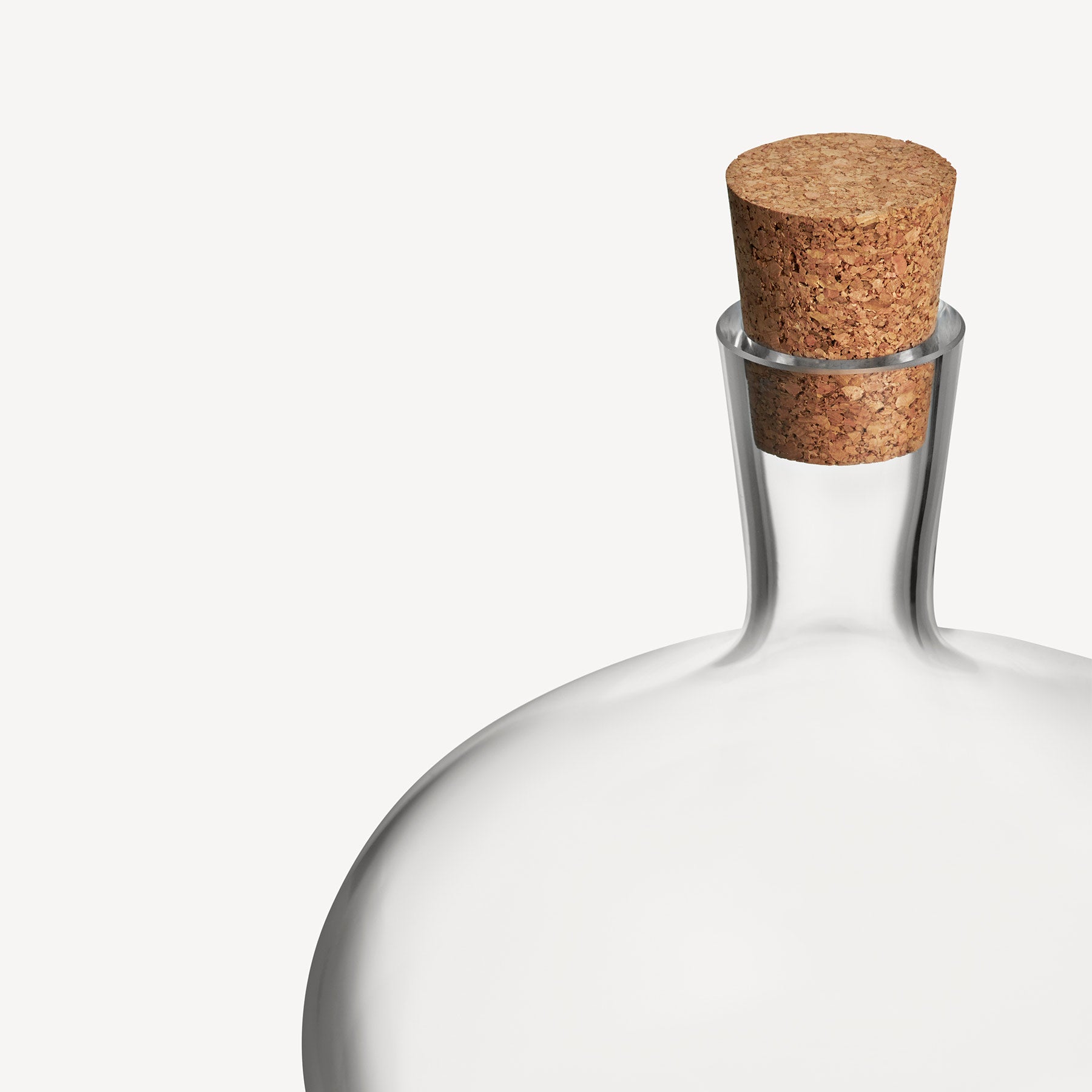Like a tall wineglass, Bod balances confidently while its bowl captures the play of light. With their sheer and tall shape, the bottles are a piece of art that stands grounded in every home. The handmade clear glass bottle on foot can be used as a decorative object, vessel, or vase.