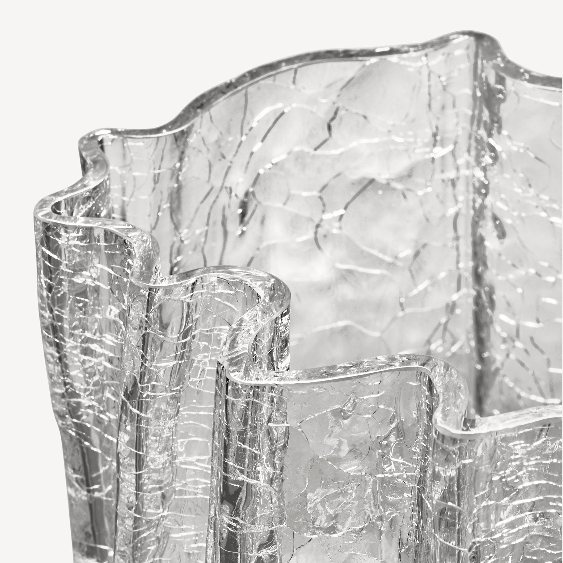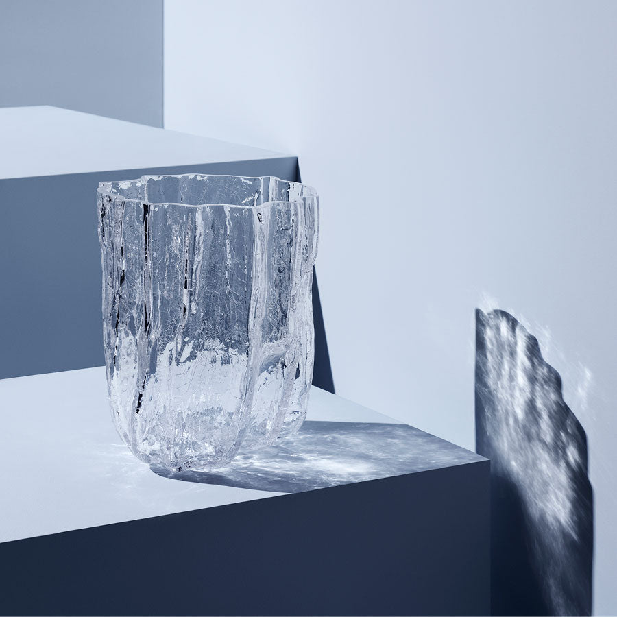 Crackle and thunder – a magical wonder! At Kosta Boda, we marvel at beautifully preserved cracks in glass. The clear glass vase from the Crackle collection has an expressive, sculptural exterior created using an old handicraft technique where the hot glass is dipped in ice-cold water. The crackled surface reflects daylight and reveals its stories of fire, earth, and water. Mouth-Blown and Handmade in Kosta, Sweden, designed by Åsa Jungnelius.
