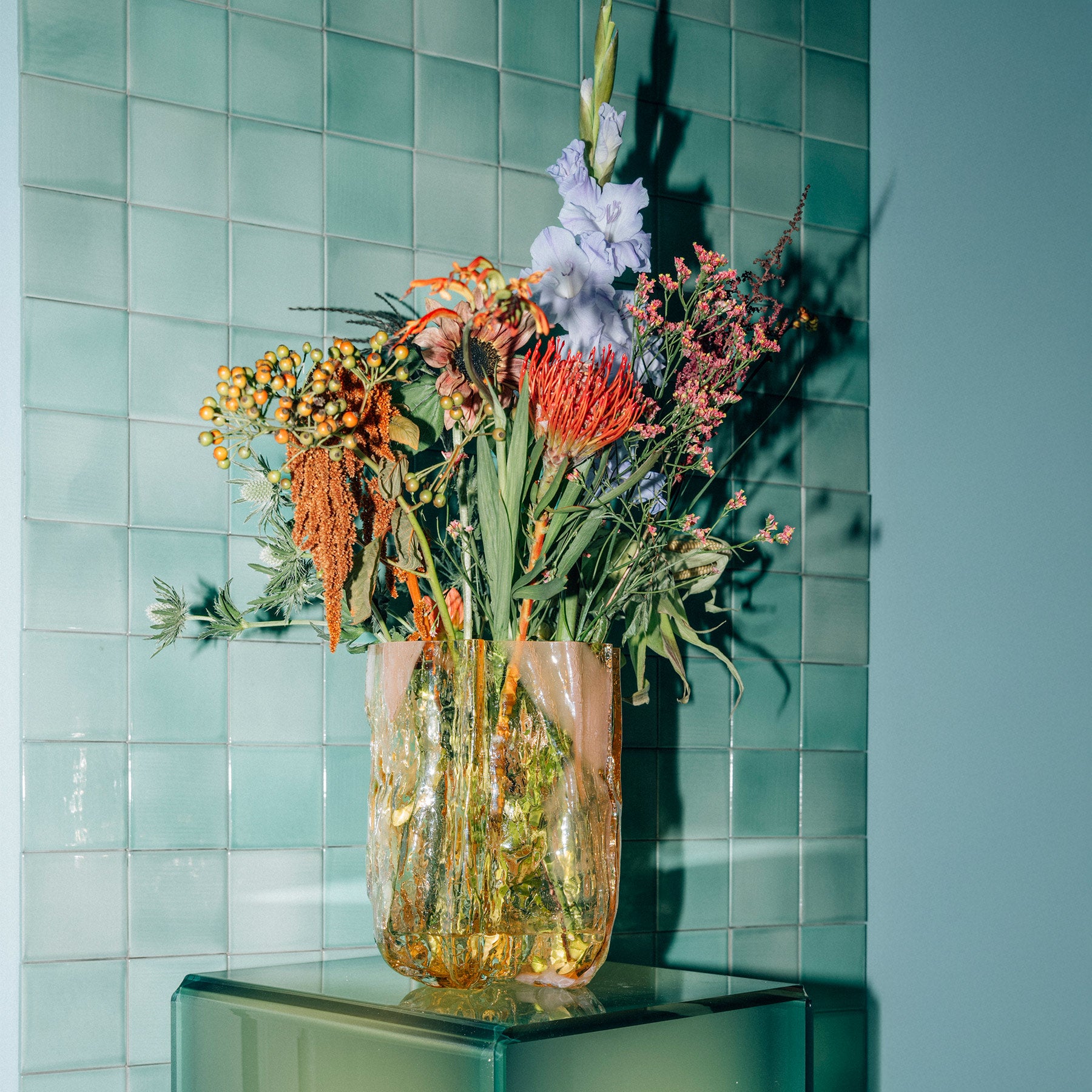 Crackle Vase Tall Amber/Flamingo