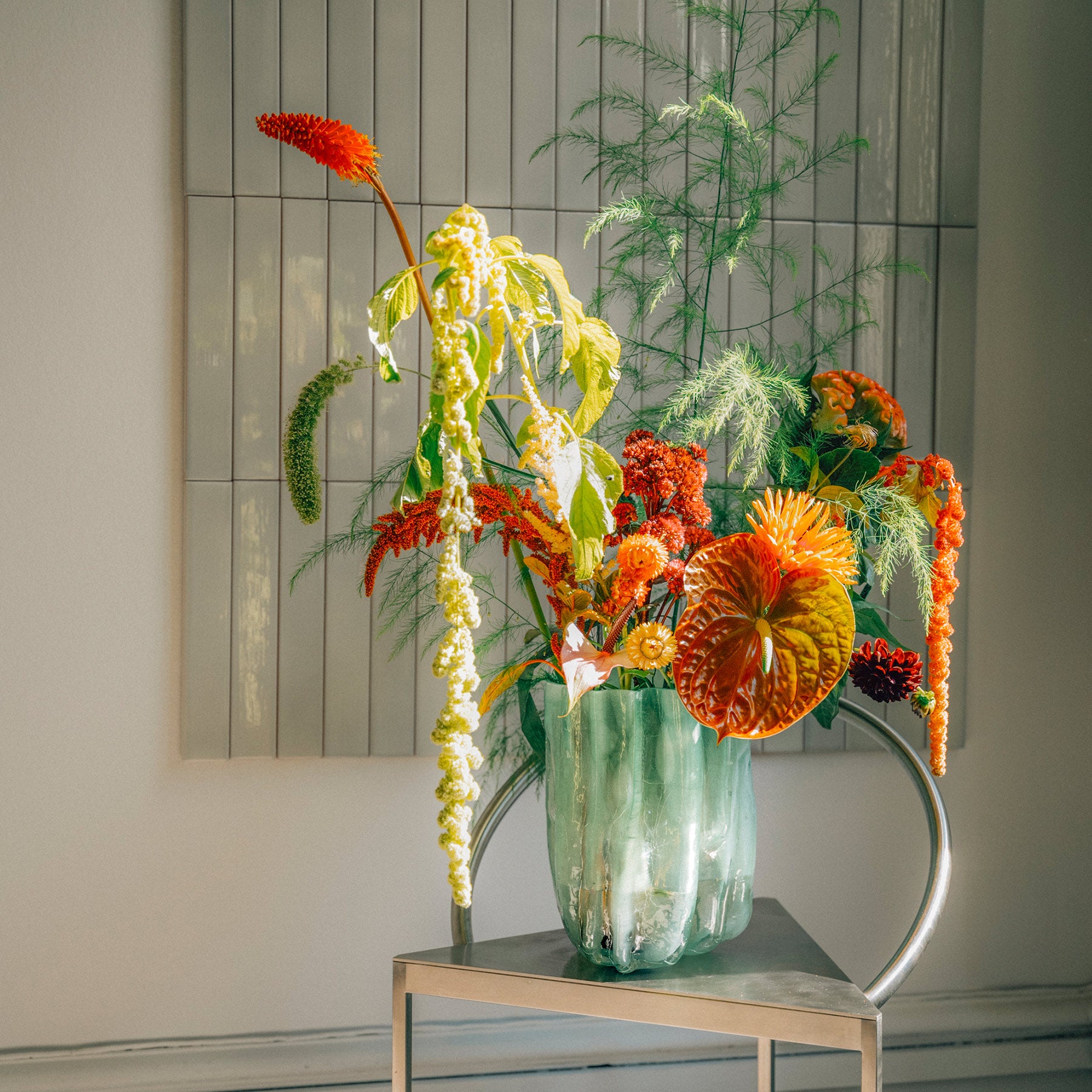 The Crackle collection is a tribute to cracks, beautifully preserved in glass. The tall jade green vase has a sculptural, expressive exterior created using an old craft technique, where the hot glass is dipped in ice-cold water. Crackle is mouth-blown in Kosta and designed by Åsa Jungnelius.