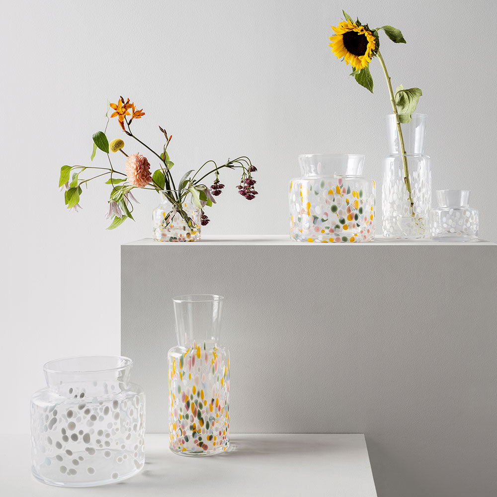 Meadow has, as the name suggests, a flowering field as both inspiration and expression. It's a collection of vases that look just as good with or without flowers. Thanks to the glass crushing technology used in the production, each vase is unique. The tall Fall vase is ideal for holding long-stemmed tulips or sunflowers, or shine bright like the vibrant colors of autumn leaves. Design by Sara Persson.