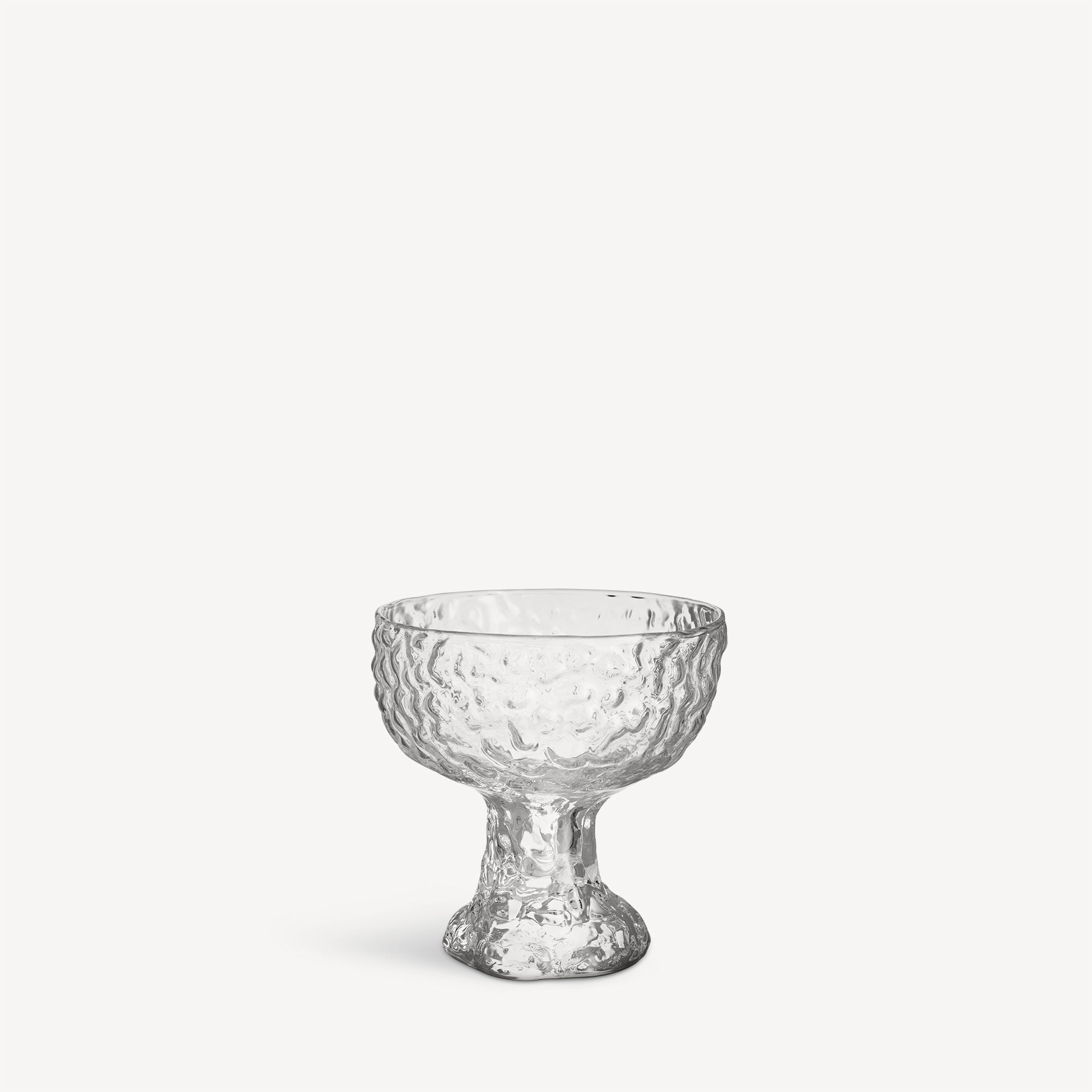 Each Moss Coupe Champagne Clear is made from waste glass, or circular glass, collected from our own production in Kosta, Sweden. The color can range from soft greens and blues to deeper, richer tones—each variation a beautiful result of the glass’s previous life. Tiny bubbles formed during the process add character and texture, making every item a unique work of art with its own story to tell.